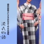 加工代込み【生地代+お仕立て代込み価格】源氏物語ゆかた反物-38 市松 黒 白 グレー 浴衣 生地 反物 お仕立て