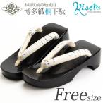 下駄 レディース 女性 浴衣 おしゃれ 痛くない 安い L フリーサイズ 黒 青 市松 博多織