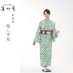 浴衣 浴衣2点セット 抹茶の縞々と菊の変わり市松 レディース