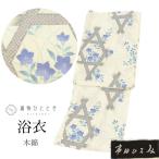 (Prices down2)市田ひろみ 浴衣単品「ブルー 横段に鉄線、萩」大人 ブランド浴衣 30代 40代 50代 I1803ss2506ykl10