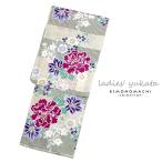 (Prices down2)浴衣 レディース 単品 「クリーム色×紫 撫子」 フリーサイズ (メール便不可)yk★25%OFF