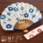 [扇袋セット] 扇子 染骨 陽まり(青 1025s) 化粧箱 シェル型 撫子 なでしこ 唐草模様 花柄 きなり 青 ブルー 竹 布 綿 和装 夏 着物 浴衣 (ma505)