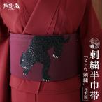 [上質な刺繍半巾帯] 細帯 半巾帯 ヒョウ刺繍 (黒豹×ワイン/105-102-002-58) 赤紫 カジュアル 半幅帯 小袋帯 着物 紬 小紋 デニム着物 浴衣 撫松庵 fj509s