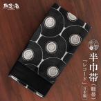 [撫松庵] 細帯 半巾帯 レコード (クロ×モノクロ/105-102-003-85) 黒 音楽 レトロ カジュアル 半幅帯 小袋帯 着物 紬 小紋 デニム着物 浴衣 和装 fj509s