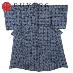 反物 優品 浴衣 格子 幾何学 紺色 綿 中古