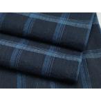 反物 優品 浴衣 格子 斜め格子 紺色 綿 中古
