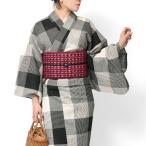 浴衣 綿麻 先染め ブロックチェック 黒 オフ白 ベージュ 格子 レディース 幾何学 シック モダン 上品 女性用 仕立上がり20代 30代 40代 50代 女性用 単品