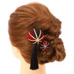 髪飾り 成人式 赤 振袖 袴 花 浴衣 夏祭り 花火大会 2点セット 黒 ゴールド ちりめん 玉飾り 鞠 鞠玉 格子柄 房付き ヘアアクセ No.9-3658