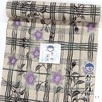 竺仙ゆかた 紬ゆかた/注染/生成り 格子に桔梗 24-709 浴衣反物 送料無料