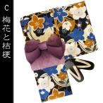浴衣 セット レディース 浴衣セット 兵児帯 大人 3点セット ベージュ系 黒 桔梗 花 和柄 古典柄 綿麻 白茶 フリーサイズ 30代 40代 50代 ママ 送料無料