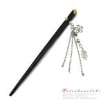 一本差し 髪飾り 成人式 振袖 袴 浴衣 かんざし 桜 黒 黄色 ゴールド パール 下がり リーフ 葉 和柄 おしゃれ かわいい チェー No.10-0431
