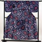 浴衣 レディース 女性浴衣単品「椿 藍鉄色」ポリエステル浴衣 プレタ浴衣 お仕立て上がり浴衣 大人浴衣 Fサイズ 女性用 ゆかた(メール便不可)
