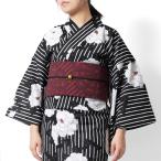 浴衣 ストライプ 椿 綿紅梅 黒 白 モノトーン モダン シック レディース 仕立上がり 単品 兵児帯 浴衣セット