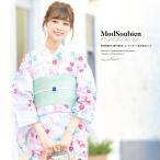 浴衣 セット レディース 浴衣セット 大人 F 帯 夏 2点 作り帯 白 ピンク 水 椿 梅 花 ラメ 綿麻 ボヌールセゾン 女性 ゆかた ユカタ yukata モダン 創美苑