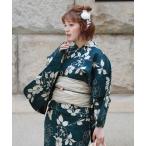 浴衣 レディース セット utatane 高級変わり織 浴衣3点セット ブルーグレーに椿唐草 フリーサイズ 浴衣セット(ゆかた・帯・下駄)レトロ