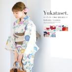 浴衣 セット レディース 女性 浴衣セット 浴衣3点セット 浴衣+帯+下駄「格子にコウモリ レトロフラワー 薔薇 オモダカ 芍薬 椿 8柄」S/F/TL/LL(メール便不可)
