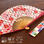 [扇袋セット] 扇子 染骨 彩MON(七宝椿 1093s) 化粧箱 花柄 フラワー 花 椿 つばき 七宝 赤 ピンク 白 生成 竹 綿 布 和装 夏 着物 浴衣 洋服 (ma505)