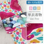 浴衣 着物 洗える 単衣 セオアルファ 夏着物 裄丈68 薄物 セオα 日本製 単品 き和風館 白地に赤紫 水色 黄色系 椿 セオα