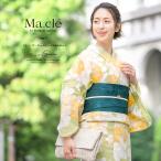 【クリアランス50%offクーポン】10/12~21浴衣 セット レディース レトロ 浴衣セット 3点セット 黄緑 グリーン 椿 つばき 花柄 ラメ 綿麻 手捺染 手縫い 半幅帯 女性 ボヌールセゾン マクレ 30代 40代 ママ 大人浴衣 フリー 送料無料