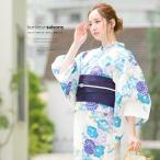 浴衣 レディース セット 作り帯 レトロ 浴衣セット 3点セット 白系 ホワイト 水色 紺 椿 手鞠 ラメ 綿麻 女性 ボヌールセゾン フリー 送料無料