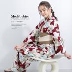 浴衣 レディース セット 浴衣セット 半幅帯 大人 3点セット ボヌールセゾン 赤 レッド 白 グレージュ 椿 綿麻 夏 Sサイズ フリーサイズ 送料無料