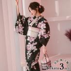 浴衣セット レディース 大人可愛い 浴衣3点セット(浴衣+半幅帯+下駄)「檸檬・八重椿・クレマチス」S/F/TL/LLサイズ 綿 きもの町オリジナル 個性的 レトロモダン 花火大会 夏祭り 女性用浴衣 ゆかた yukata【メール便不可】