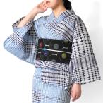 レディース 浴衣 単品 綿麻【18】麻混 高級 ゆかた ホワイト系 ブラック系 幾何学 菱 縞 水玉【clfy】