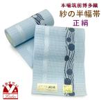 京都室町st. 紗の半幅帯 本場筑前 博多織 正絹 細帯 夏用の着物や浴衣に「水色、流水水玉」ssh502