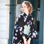 浴衣 レディース 単品 bonheur saisons ボヌールセゾン 黒 ブラック 梅 花 手鞠 水玉 波紋 桜 ラメ 綿 女性用 フリー 送料無料