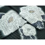 浴衣 反物 No.206 黒地・牡丹・菊柄・注染染め/耳あり