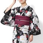 ゆかた レディース きもの道楽 浴衣 大輪牡丹(黒)