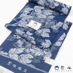 浴衣 反物 No.198 紺鼠地・牡丹・菊柄・注染染め/耳あり