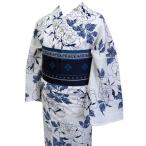 着物美人 送料無料 浴衣 2点セット 変り織り 女浴衣 浴衣白 半幅帯紺 浴衣帯 帯付き 浴衣セット 街着 女性用 M F L 155-165 【 白 藍 紺 牡丹 】s443230-2