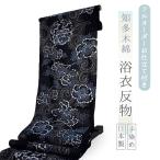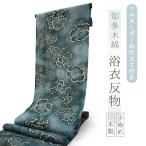 美術サロン 浴衣 ゆかた 綿 麻 綿麻混 知多木綿 牡丹 仕立て上がり プレタ 模様 藍捺染 藍染め 藍色 レディース 本格派 BS26