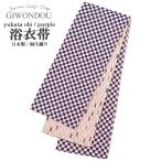 浴衣帯 半幅帯 小袋帯 細帯 リバーシブル ポリエステル 仕立て上がり 高級 紫色 市松格子 矢絣模様 粋 モダン 桐生織 日本製 あすつく対応