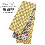 浴衣帯 半幅帯 小袋帯 細帯 リバーシブル ポリエステル 仕立て上がり 高級 カラシ色 市松格子 矢絣模様 モダン 桐生織 日本製 あすつく対応