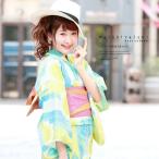 浴衣 セット レディース 浴衣としわ兵児帯の2点セット「スイートリリー:よろけ縞に椿、朝顔矢絣、小輪ひまわり、菊唐草、紫陽花つばめ」Fサイズ (メール便不可)