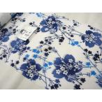 竺仙鑑製浴衣地 綿絽 地染め カサブランカ(百合) 紺地に白【ちくせん】【ゆかた】【夏祭り】【花火大会】【送料無料】