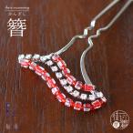 [組曲] 髪飾り ビーズ 流線かんざし アカ 簪 普段使い 浴衣 振袖 ヘアアレンジ ストーン 赤 クリスタル シルバー モダン 着物 和装 洋装