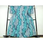 反物 優品 浴衣 縞 菖蒲 水色 綿 中古