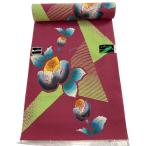 反物 優品 浴衣 草花 縞 ピンク 綿 中古