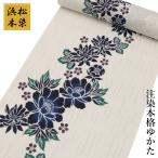浴衣 反物 レディース 耳あり 耳付き ゆかた 生地 女性用 浜松 注染 本染め 生成り 花 菊 芍薬 綿麻 高級 日本製 大人 30代 40代 50代 60代