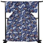反物 優品 浴衣 菖蒲 紺色 綿 中古