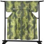 浴衣 身丈151cm 裄丈64cm M 絞り浴衣 菖蒲 流水 よもぎ色 綿 名品 中古