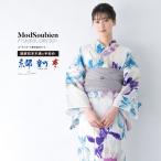 全品対象☆最大1000円クーポン配布中☆10/21まで 浴衣 セット レディース 浴衣セット 兵児帯 2025新作 京都室町夢 3点セット 女性 白 薄灰 紫 水色 菖蒲 花柄 モダン おしゃれ 知多木綿 綿麻 帯 下駄 フリー 送料無料
