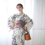 浴衣 セット レディース レトロ 浴衣セット 3点セット 白系 ホワイト 紺 紫系 萩 縞 綿麻 半幅帯 女性 ボヌールセゾン マクレ 30代 40代 ママ 大人浴衣 フリー 送料無料