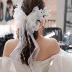 ヘッドドレス ヘアピン リボン 蝶結び 大人 二次会 発表会 結婚式 花嫁 前撮り 挙式 撮影 和装 着物 浴衣 披露宴 ウェディング ブライダル オフホワイト