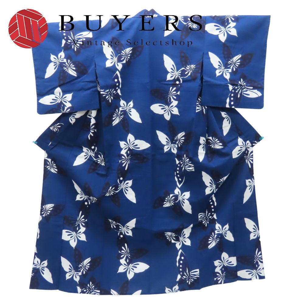 【20%OFF!!楽天スーパーSALE!!】【中古】 浴衣 綿 ネイビー 蝶 和装 呉服 和服 きもの レディース 女性