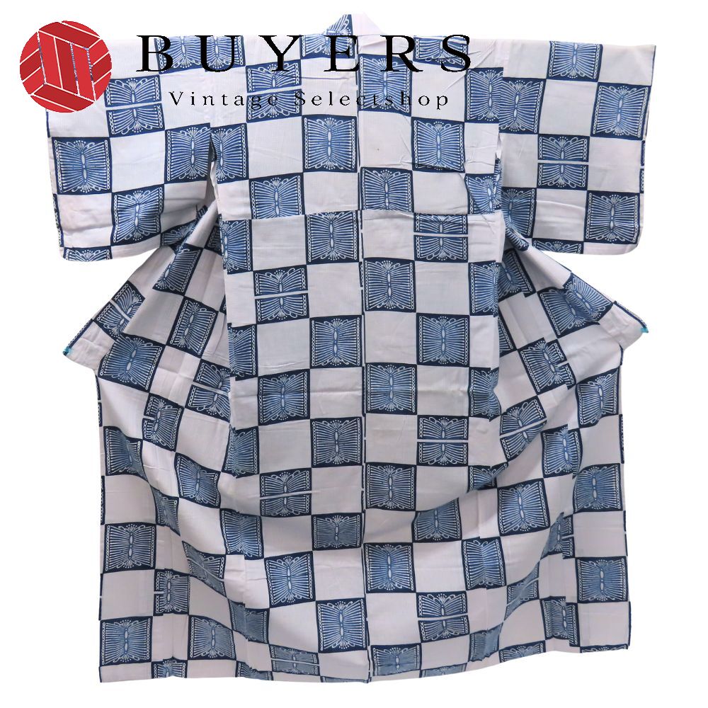 【20%OFF!!楽天スーパーSALE!!】【中古】 浴衣 綿 ピンク 紺 ブルー系 幾何学模様 蝶々 お洒落 和装 呉服 和服 きもの レディース 女性