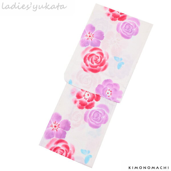 【レンタル】浴衣 セット レディース レトロ 浴衣セット 大人 4点セット 白 ホワイト ピンク 紫 パープル 花 蝶 綿 キスミス 半幅帯 夏 フェミニン ゆかた 女性 和服 往復送料無料